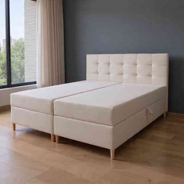 Prodám novou čalouněnou manželskou postel s praktickým úložným prostorem.