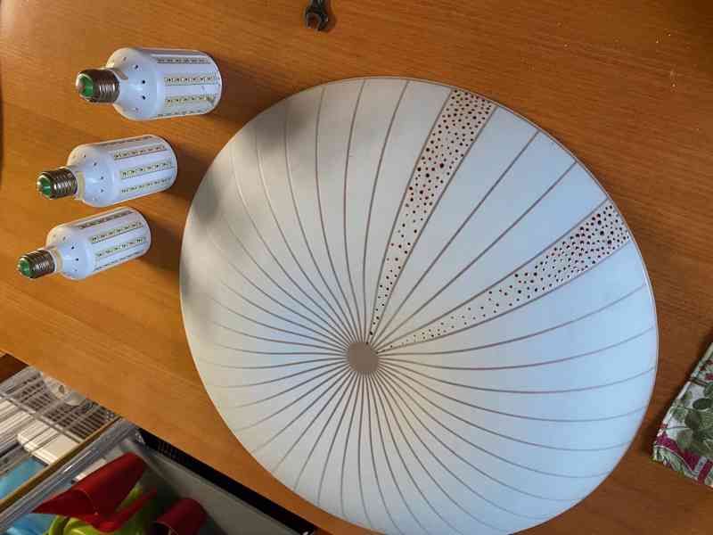 Prodám bílé stropní svítidlo průměr 52 cm včetně 3 ks led žárovek. Při rychlém jednání 100,- sleva