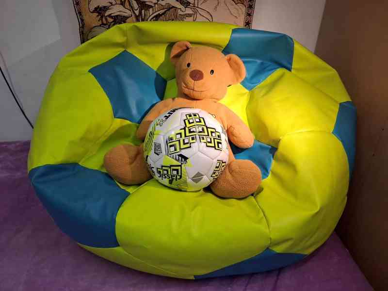 Nabízím k prodeji sedací vak/Fatboy značky JABBA, model Baloon ve tvaru fotbalového míče. Materiál: Eko kůže PVC, výplň EPS/ polystyrenové kuličky. Dobrý stav, omyvatelný materiál. Průměr: 80 cm, tvar do kruhu. Můžete na něm sedět i ležet, maximální pohodlí a tvarovatelnost. Do bytu, na terasu i na zahradu. Pořizovací cena: cca 2.800,- Kč. Prodám za 1.400,- Kč. Osobní předání: Praha 4 , (nebo Šlovice = mezi Berounem a Rakovníkem v CHKO Křivoklátsko). Poštou neposílám. Platba v hotovosti při předání.