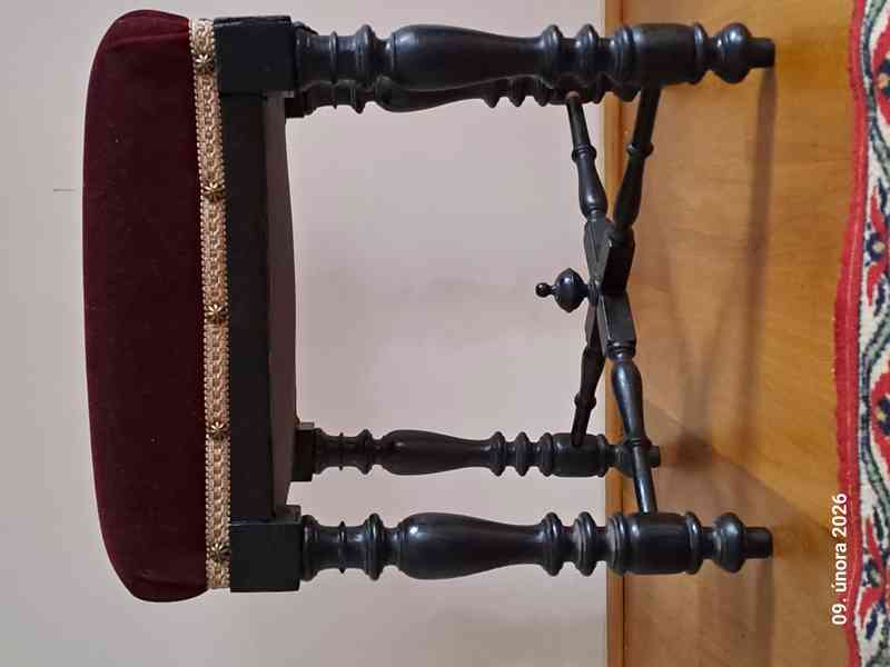 Prodám dva čalouněné taburety v barvě bordó (samet) - cena 1.500 Kč je za jeden kus.