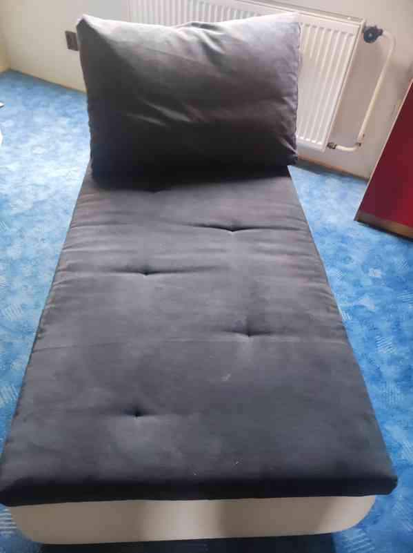 Lůžko sedací soupravy, nebylo používané, velikost 150 x 75, polštář, případně i více kusů. Látka tmavě šedá, okraje - bílá koženka - bez vady. cena domluvou