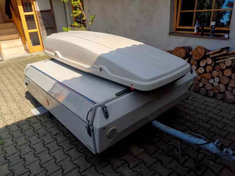 Prodám stanový přívěs Camptourist II. Výroba IFA - DDR, r.v. 1973. Zachovalý stav, garážováno. Před dvěma roky nový stan, nové pneu. Součástí je přidaná - odejímatelná rakev, originál Camei. Používáno vždy cca 14 dní letní dovolené. Rozložený stan se skládá z ložnice 2+1lůžka a předsíně s kuchyňským pultem, zabudovaným dvojvařičem na PB lahev-2kg ,umístěné v podlaze. Přívěs má velké 3 úložné prostory. Rakev sloužila k uložení let. modelů. Výhodou je, že přívěs je za autem schován a nezvyšuje spotřebu paliva. Také dobře sedí i při vyšších rychlostech. V kempu platíte za stan a ne za karavan. Cena: 20000,-kč