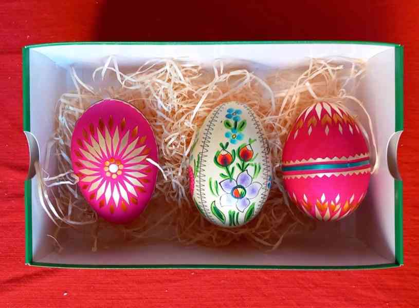 Prodám 3 zdobené velikonoční kachní kraslice velikosti 8÷9 cm.