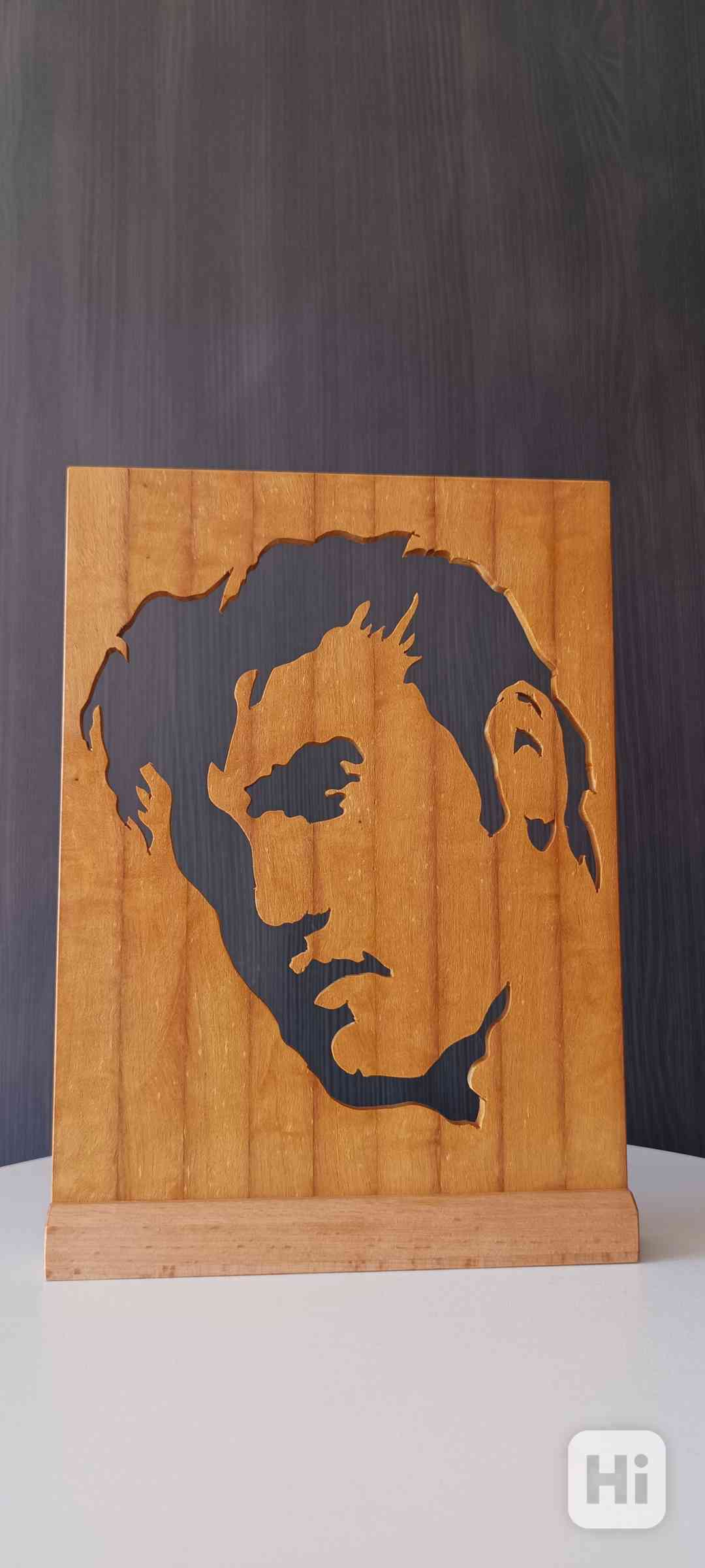 Ručně vyráběné dřevěné dekorace. Masiv dřevo. Materiál teak , podstavec buk. Nátěr eko lak. Rozměry : výška 270 mm , šířka 190 mm , tloušťka 8 mm . Obraz Elvis Presley