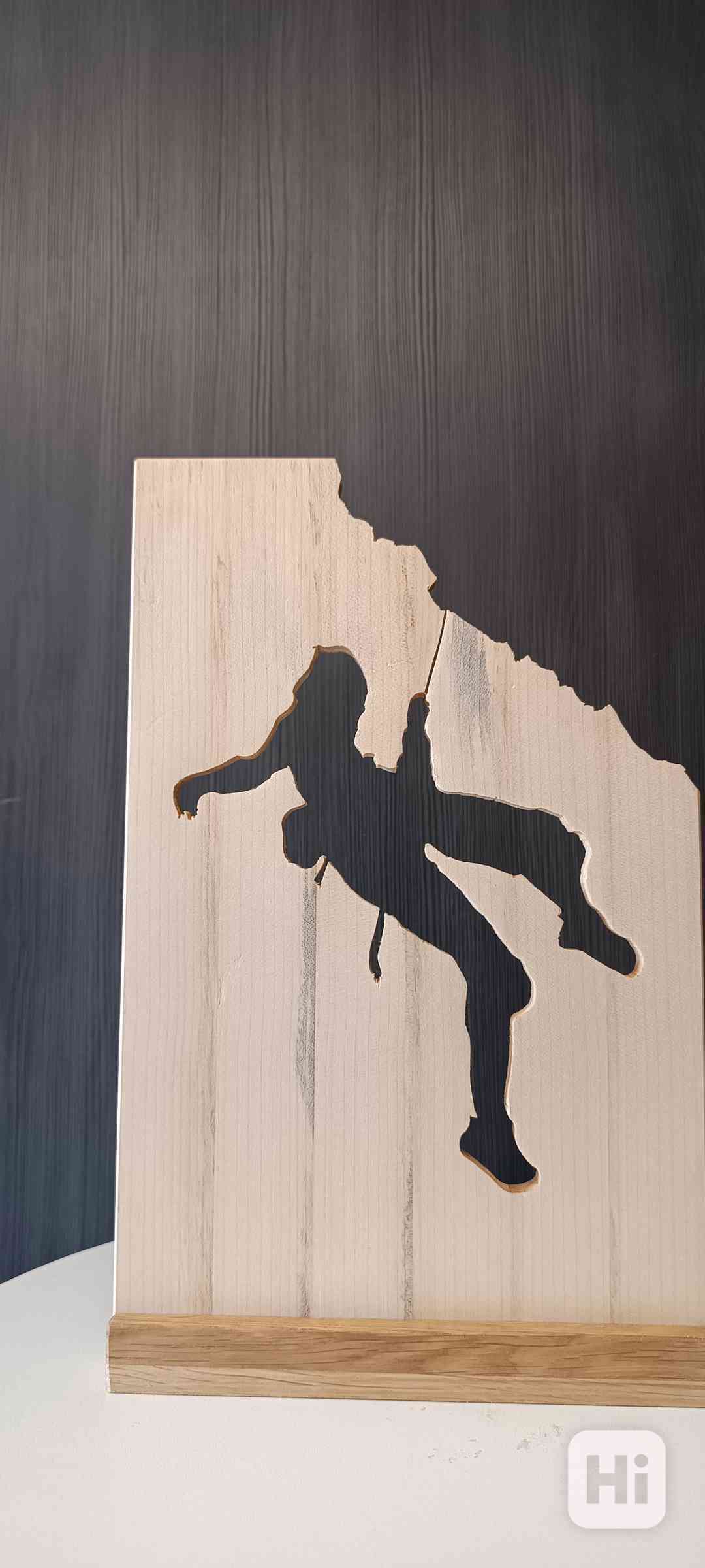 Ručně vyráběné dřevěné dekorace z masivního dřeva. Materiál javor, podstavec dub. Nátěr eko lak. Rozměry: výška 32 cm. šířka 20 cm. tloušťka1,0 cm. Horolezec. V případě zájmu neváhejte mě kontaktovat 📞+420 776 837 124