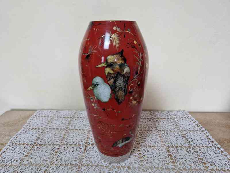 Krásná obří porcelánová Váza s 9 ptáky, bohaté zdobení, ruční malba a zlacení - značeno, Satsuma Japonsko, počátek 20 stol.