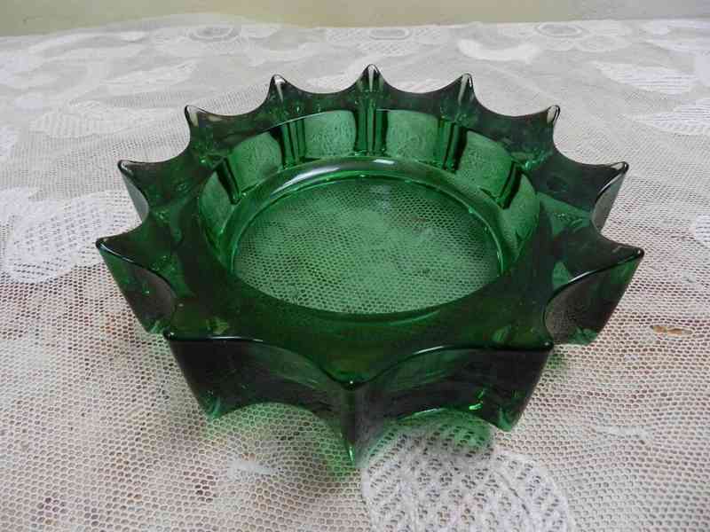 Miska z lisovaného zeleného skla - R. Jurnikl, Sklo Union, 2 pol. 20 stol.