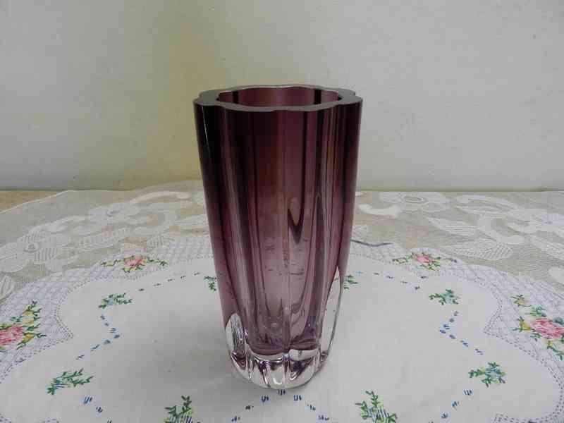 Masivní broušená silnostěnná váza, barva fialová - Čechy, 2 pol. 20 stol.