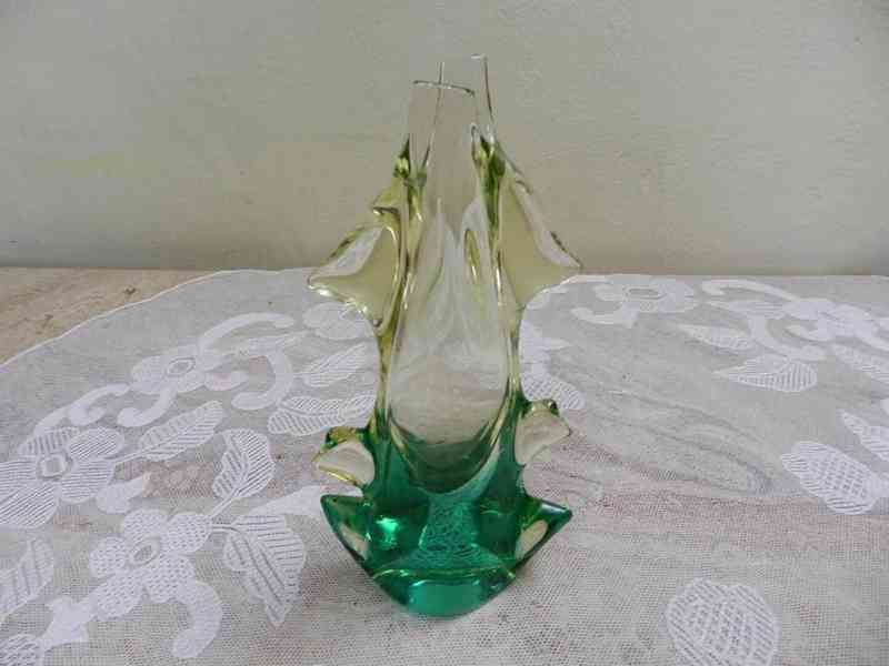 Zajímavá Autorská žluto-zelená Váza z hutně tvarovaného skla, Čechy, 2 pol. 20 stol.