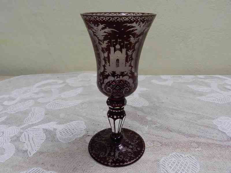 Krásný starý rubínový bohatě zdobený větší Pohár s Hradem, Egermann.