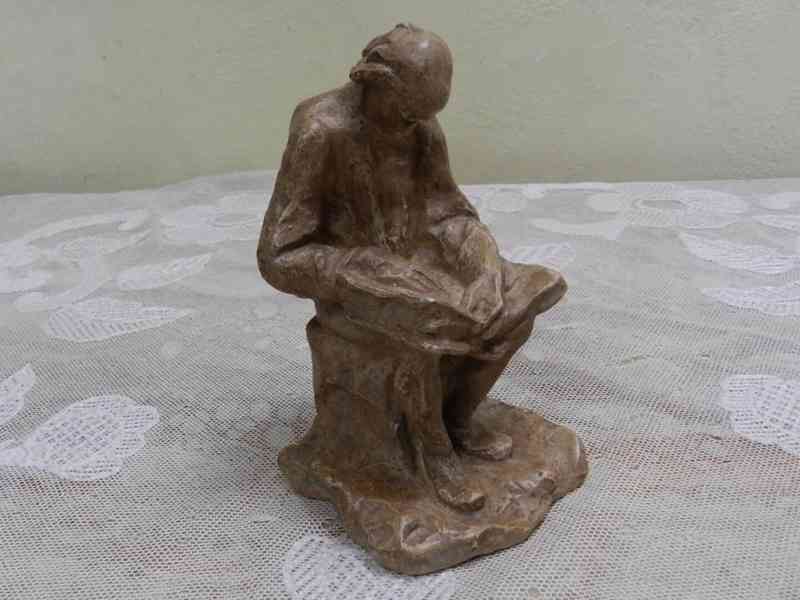 Zajímavá stará keramická Plastika, Muž s knihou - Značeno ve spodní části soklu.