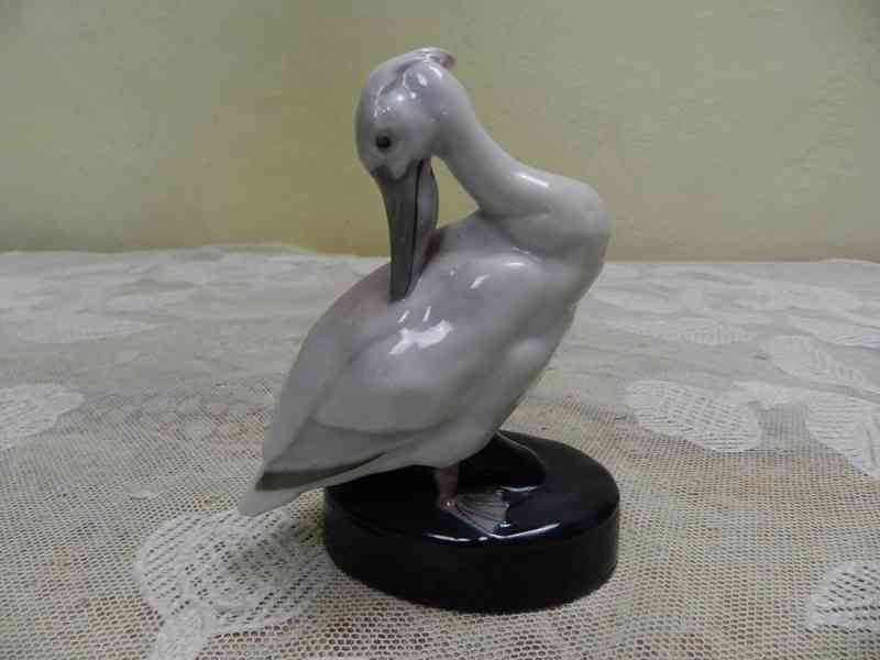 Hezká porcelánová plastika, Pelikán - Eichwald, Dubí u Teplic, kolem 20 a 30 let 20 stol.