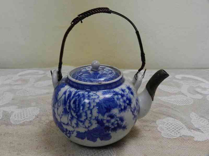 Zajímavá velmi stará ručně malovaná kobaltová Konvička, stará cínová oprava, jinak v pořádku, 18st?