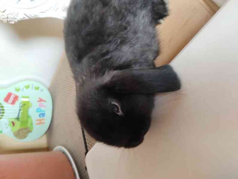 Nabízím ze svého registrovaného chovu FB Králíčci od Pohádky samičku minilopa v barvě černé, hodná mazlivá, odchovaná doma, vhodná na mazlíčka, převlečená proti kokcidióze, učená na králičí WC, do dobrých podmínek, k okamžitému odběru v Mostě.