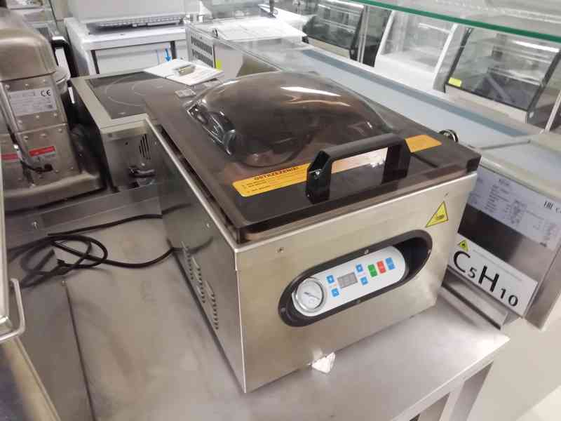Vakuovací stroj komorový EKO, digitální ovládání, délka sváru 290 mm, nerez provedení, poklop ze speciálního silného polykarbonátu, komora 11,5 litru. Rozměr ŠxHxV: 429 x 359 x 378 mm; rozměr komory: 300 x 290 x 100 mm. Maximální výkon vakua 80%, výkon 630 W, 230 V, není vhodný na stálý provoz. Cena: 30.990,- Kč vč. DPH + doprava. (kód: S691310)