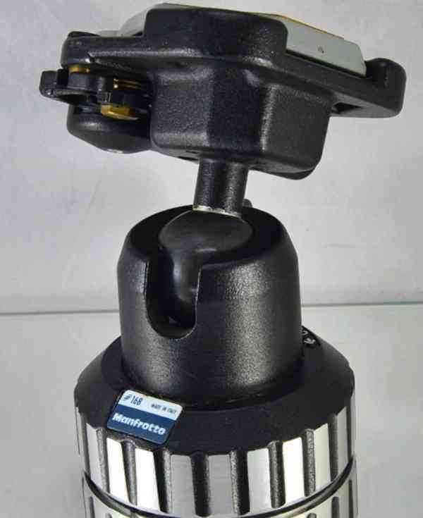 Kloubová hlava s dvojitou akcí s velkou akcí (3055) s rychloupínací destičkou # 3049. Tato kulová hlava je podobná jako kulová hlava # 3026. Používá větší šestihrannou rychloupínací desku pro lepší podporu větších těl fotoaparátu.