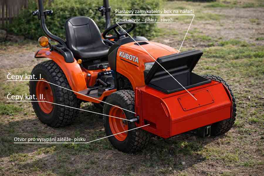 Nabízím závaží do třetího bodu (3bodový závěs) s integrovaným plastovým boxem na nářadí. Ideální řešení pro vyvážení traktoru a zároveň bezpečné uložení drobného vybavení.