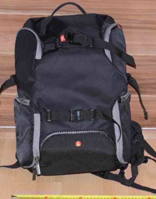 Fotografický batoh Manfrotto MA-BP-TRV Advanced Travel je vhodný pro uložení DSLR fotoaparátu s nasazeným objektivem, další až 2 objektivy (jako například fotoaparát Nikon D810 a 3 objektivy, například 16-35 f/2.8, 24-70 f/2.8 nebo 70-200 f/2.8) a 15" notebook nebo sadu DJI Mavic Drone Pro s více bateriemi. Malý stativ je možné umístit pomocí pásků na přední stranu batohu. V horní části batohu je samostatný prostor pro osobní věci a batoh disponuje i oddělenou kapsou pro notebook. Batoh se dodává včetně pláštěnky.