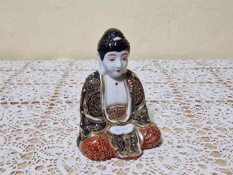 Krásná bohatě ručně zdobená a zlacená porcelánová soška Budhy, kvalitní zpracování - Satsuma, Japonsko, 19/20 stol.