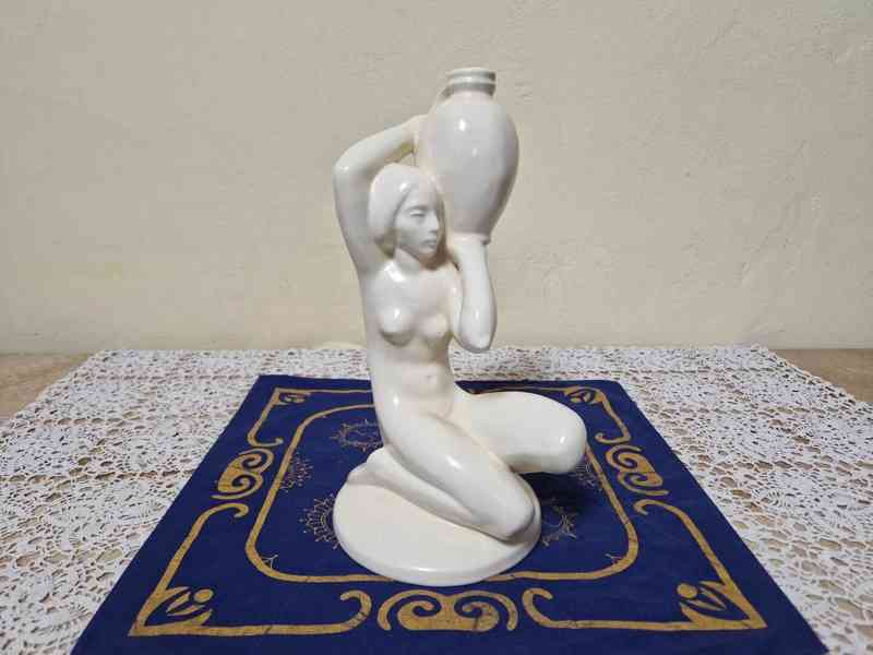 Velmi povedená keramická plastika, dívčí akt - Horní Bříza, Signováno na horní straně soklu, značeno na spodní části soklu, 1 pol. 20 stol.