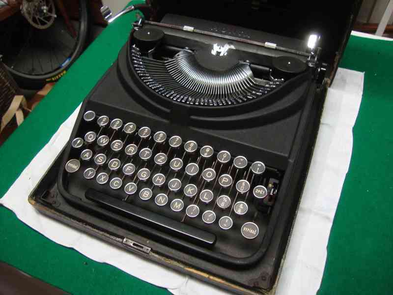 Prodám tento retro, starožitný, kufříkový psací stroj značky Monta. Stroj funkční v pěkném, zachovalém stavu. Aretace válce při zavření do kufříku funguje, všechny písmena vyzkoušeny, sami se vrací, nic tam nedře, vypínač mezi dvěma znaky také funguje, píše super viz papír při zkoušce. Zámek funguje, klíček je u něho. Jenom jediný problém že někdo vypáčil zadní panty, nevěděl jak se odemyká a tak to takto hrubě udělal. Jeden pant tam je, šel by znovu nasadit a přichytit nýtky, šlo by také vyrobit dle předlohy druhý, ještě je třeba vzadu u pantů dolepit dřevo, které páčením upadlo a kde byli horní panty přichyceny. Na funkčnost stroje nemá vliv, je to pouze kosmetické poškození. Jinak super stav, kdo potřebuje na psaní, nebo jako dekoraci. Uchy je také v top stavu a drží. Ve víku je ještě původní příslušenství, štětec, kartáček na údržbu a gumičky.