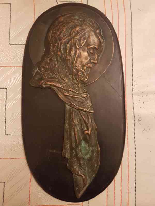 Prodám krásnou bronzovou plastiku na dřevěné oválné leštěné podložce na zavěšení s basreliéfem portrétu Krista se svatozáří a splývajícím kouskem roucha. Nesignováno. Rozměry podložky: 18 x 35 cm, průměr svatozáře 14,5 cm. Perfektní stav, krásná patina - skvělý dárek! Osobní předání na Praze 3, nebo zaslání přes Zásilkovnu či Balíkovnu. Volejte 770 630 523, nebo pište na morgiana007@gmail.com