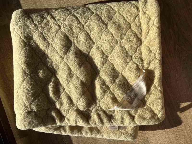 Podložka na postel z čisté vlny. Vhodná pro alergiky. Málo používaná. K dispozici 2 ks. Cena za 1 ks 1100. Možno koupit i jednotlivě .