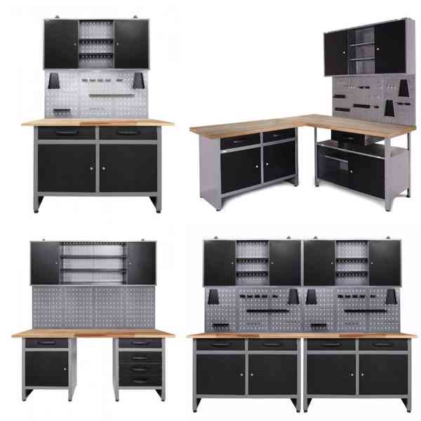 Jednotlivé díly dílenské sestavy můžete také umístit odděleně od sebe a navrhnout si Vaší dílnu, garáž individuálně podle svých přání a potřeb.