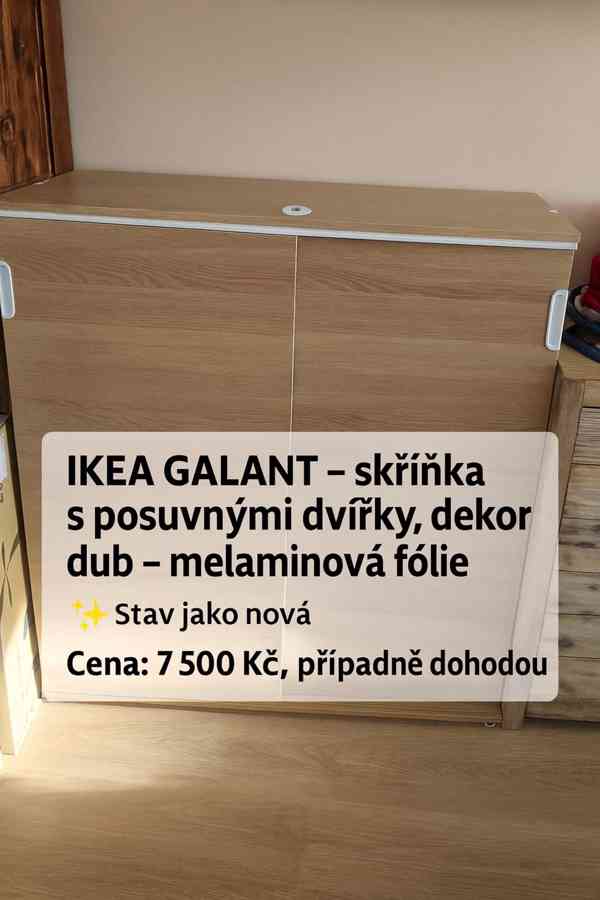 Prodám skříňku IKEA GALANT s posuvnými dvířky. Světlý dubový dekor (melamin).