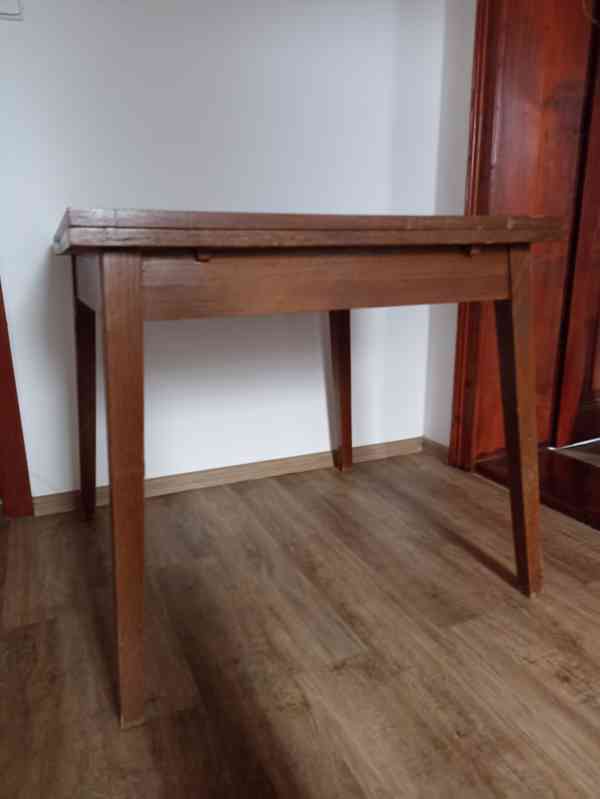 Prodám zachovalý, kvalitní stůl Zn.Ton + 4 židle. Vyrobeno z masivu. Stůl je rozkládací (155x84,5 cm, výška 76 cm), ve složeném stavu 84,5x84,5 cm. Výška sedu židle 48 cm.