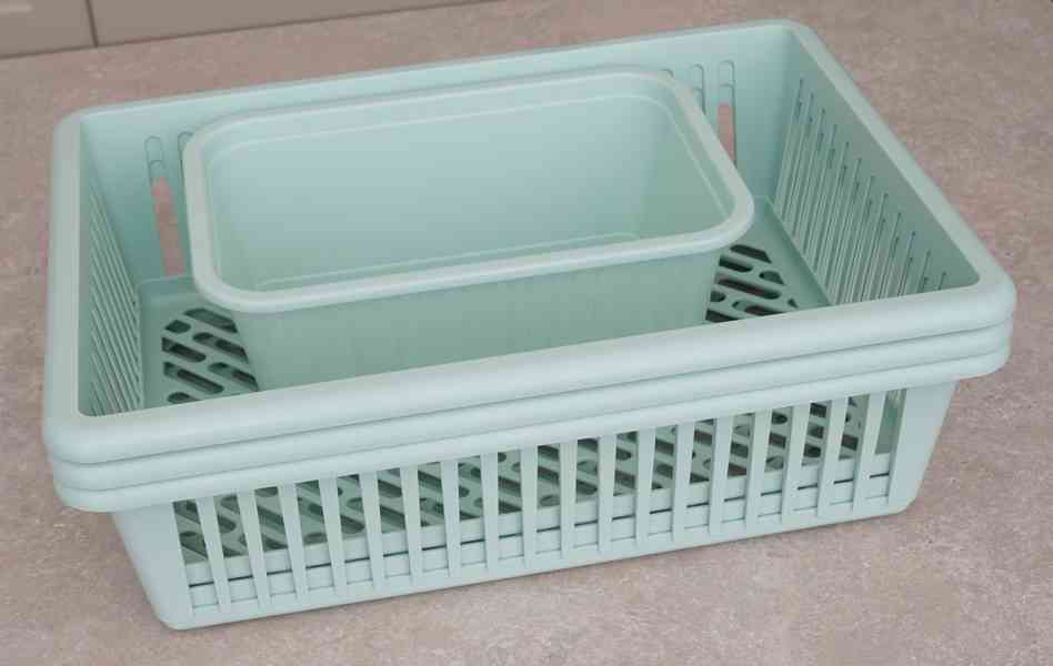 Plastové košíky 4 ks minimálně používané. Barva mint. Česká výroba, stav viz fota.