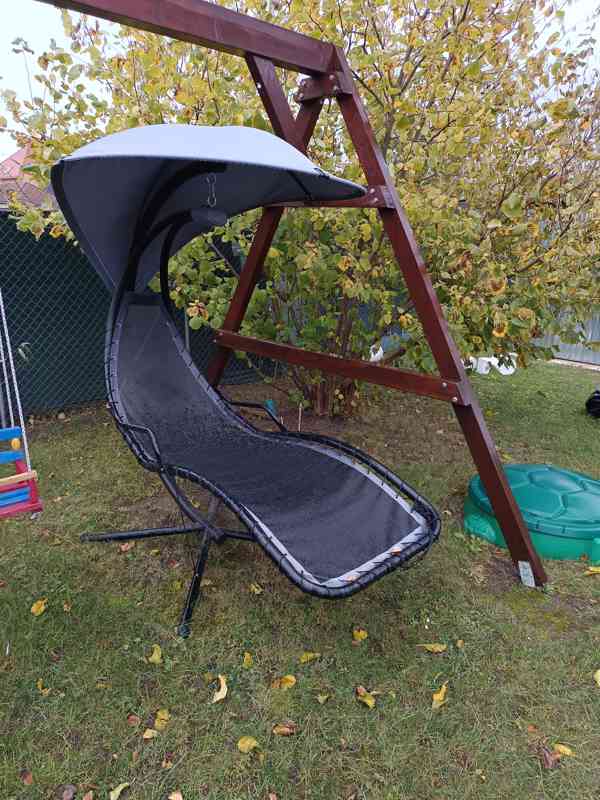 Nabízím k prodeji poctivou houpačku z masivnich trámů 14x14cm,délky 300cm,výšky 230cm. Dřevěná houpačka osvěží váš exteriér nadčasovým designem, který se jen tak neokouká. Jedná se o českou, ručně vyrobenou houpačku z masivního dřeva. Ukotvení je v zemi cca 1m, v kotevní patce.. dá se kdykoli vytahnout. Cena dohodou