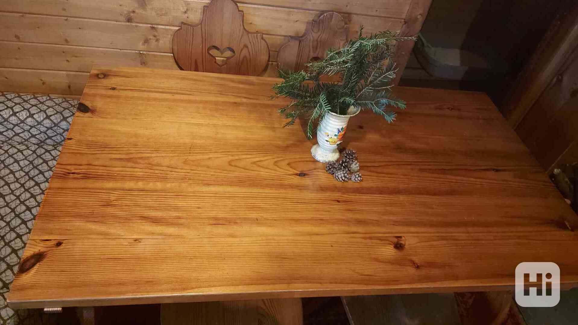 Prodám originální jídelní sestavu v tradičním valašském stylu, kterou kdysi vlastnoručně vyrobil můj dědeček. Nejde o žádnou sériovou výrobu z obchodních řetězců, ale o poctivé truhlářské řemeslo, které vydrží generace.