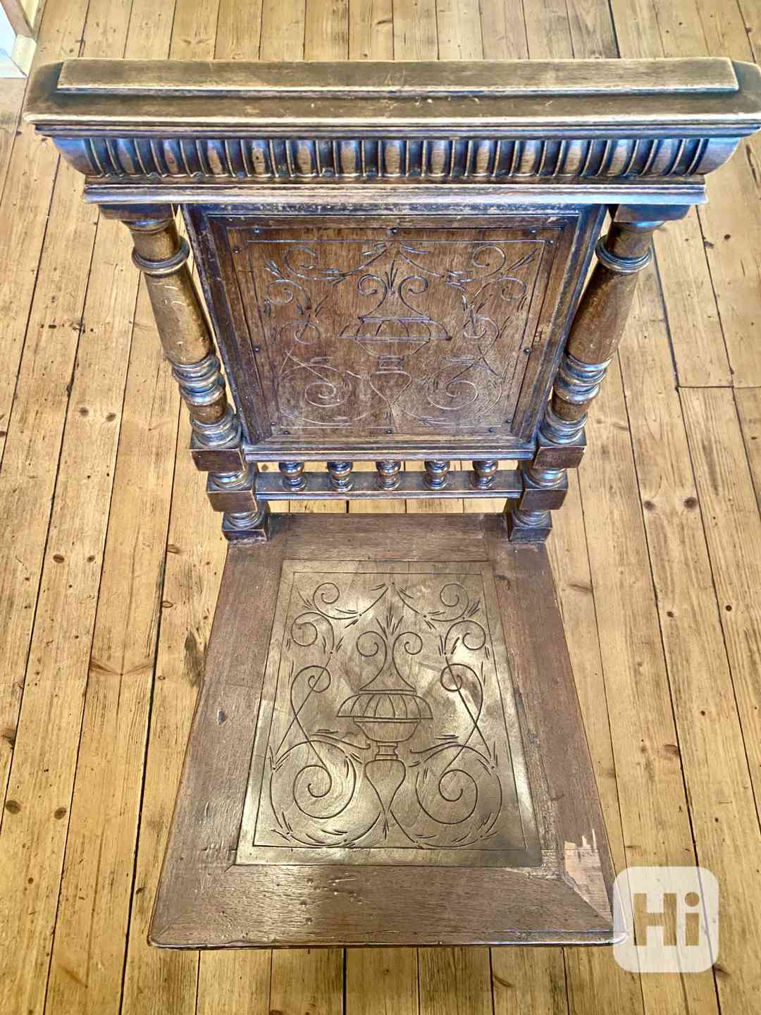 Židle rustikální ručně vyřezávané 6 kusů. Židle lehce vržou, tedy některé spoje třeba zpevnit.