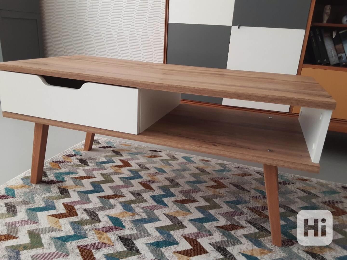 Zánovní konferenční stolek s úložnými prostory. Rozměry 110x50x50, bez vady.