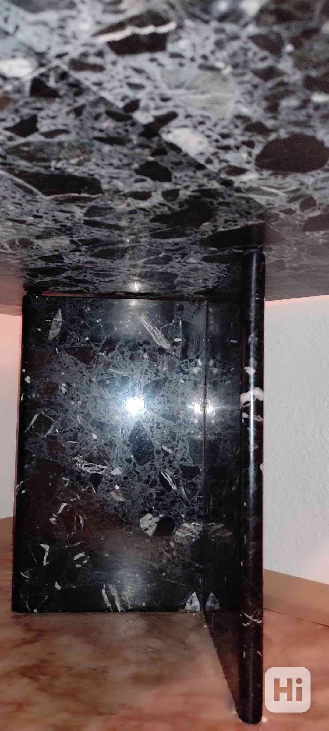 Konferenční stolek i s nohami ve tvaru V. Šírka je 98x68 a na výšku 41 cm. Pozor je hodně těžký. Bez značení. Jeví známky opotřebení. Odvoz si musíte zajistit.