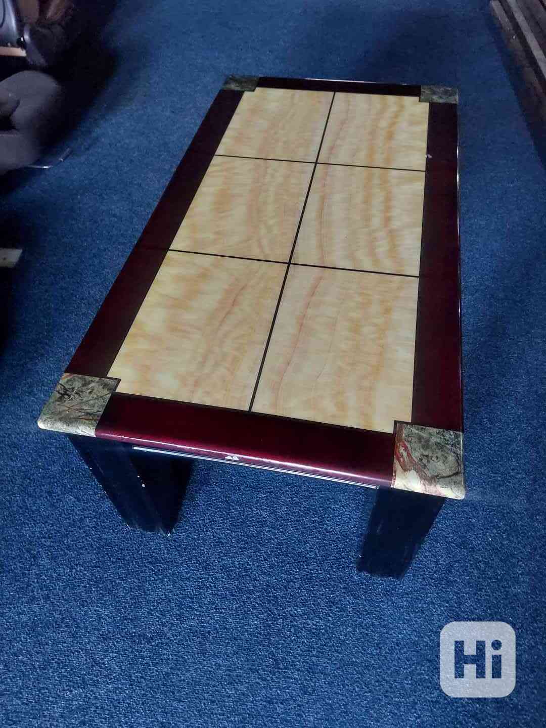 Stolek je stabilní, s pevnou konstrukcí, keramická horní deska má menší vadu, ale na funkčnost nemá vliv. Vhodný na chalupu, do obýváku nebo jako odkládací stolek.