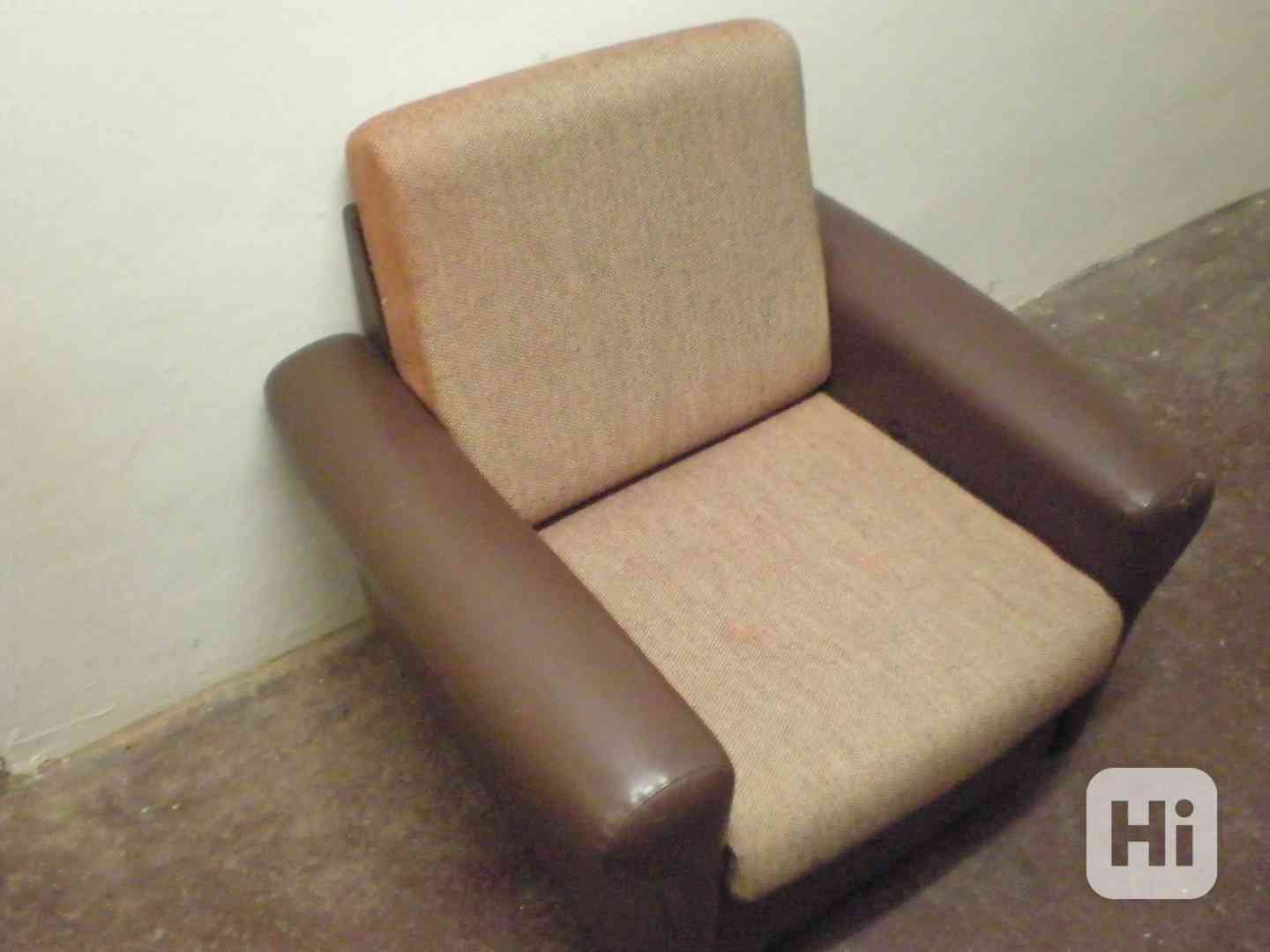 Tvoří jej pevný dřevěný rám a čalounění z umělé hnědé kůže. Měkký sedák a opěrák jsou molitanové s potahem pevné látky. Je navíc posazeno na chromových kolečkách, které zvyšují jeho manipulaci. Výška opěradla 61cm, šířka vnitřního prostoru 54 cm, celková šířka křesla 80 cm, hloubka 70 cm. Rozměry čalouněného sedáku 60 x 55 x 12 cm. Rozměry čalouněného opěráku 50 x 55 x 12 cm. K dispozici je jeden velmi zachovalý kus. Vlastní odvoz! Nabídněte. Při koupi dvou položek z mé nabídky získáte na tu dražší 10% slevu.