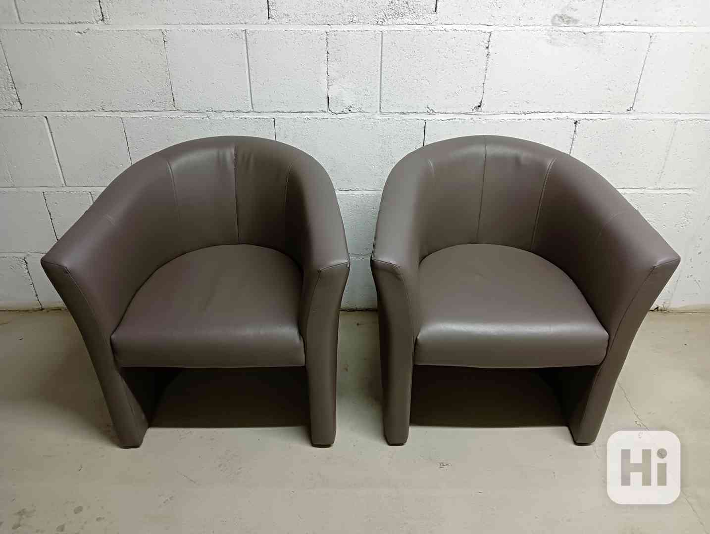 2x hnědá koženková křesla...