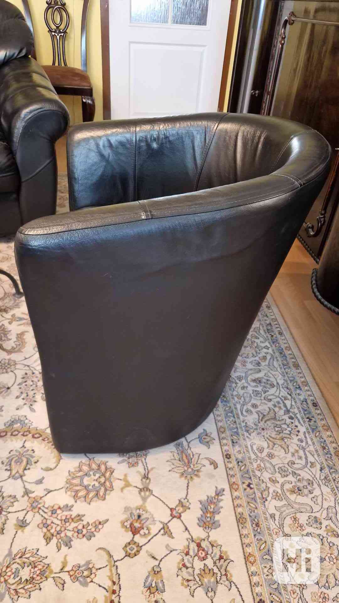 Křeslo kožené černé v bezvadném stavu. Rozměry 68cm × 60cm × 70cm (š×h×v).