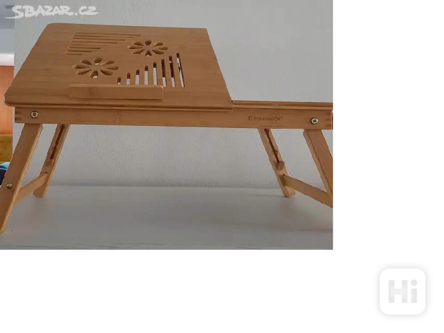 Psací stůl na notebook z bambusu představuje skvělý a praktický kousek nábytku. Je skládací, umožňuje nastavení výšky a nabízí pohodlí při práci na notebooku. Díky pěti různým úhlům naklonění a vzduchovým otvorům zajistí optimální pracovní prostředí. Navíc je vybaven malou zásuvkou pro ukládání drobností. Rozměry stolu jsou 55 x 35 x (21 - 29) cm.