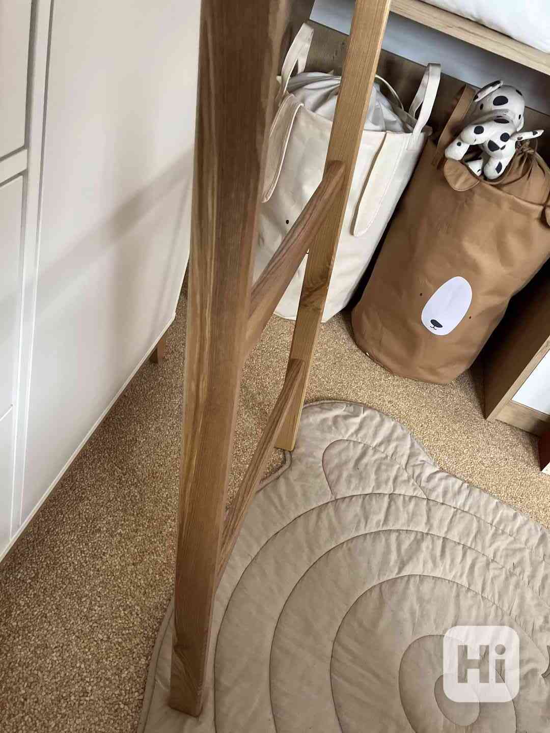 Nabízený žebřík slouží jako alternativa "němého sluhy", tj. k odkládání oděvů v ložnici, nebo dětském pokoji. Materiálem je tvrdé jasanové dřevo nejvyšší "A" kvality. Povrchová úprava 2x hard oil nature. Výška 150 cm, š 56 cm. Jedná se o zakázkovou truhlářskou výrobu.