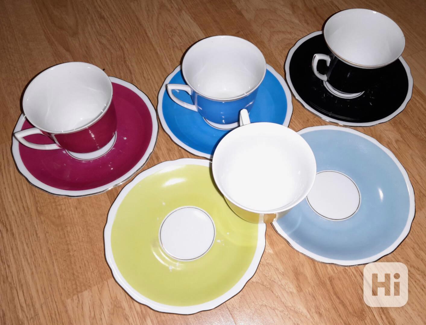Pět hrnečků a šest talířků - stejný design; československá výroba. Cena dohodou (nabídněte) nebo zdarma k libovolnému nákupu z mých inzerátů.