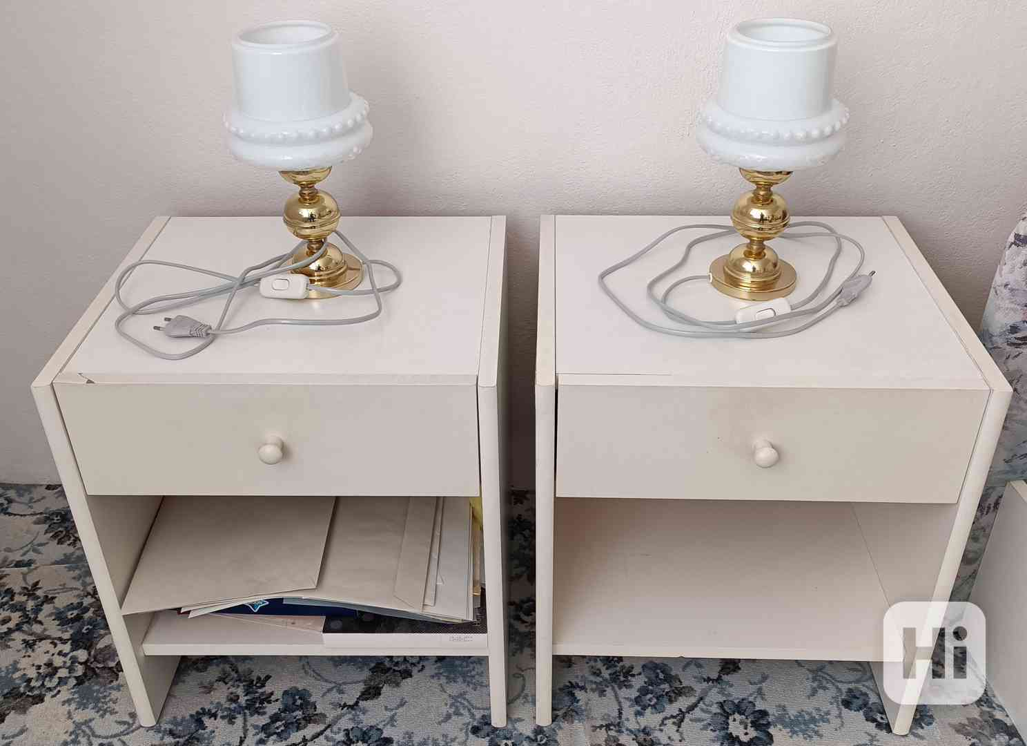 Z důvodu stěhování prodám 2 bílé noční stolky a 2 lampičky. Při koupi všeho cena 600 Kč. Možno i samostatně (stolky po 250 Kč, lampičky po 150 Kč).