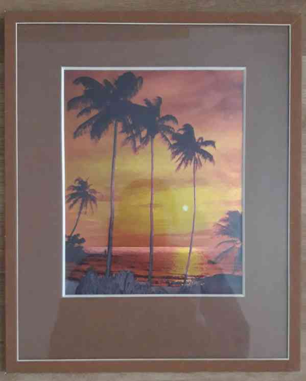 Prodám obrázek palmy u moře v paspartě, vel.40x30cm , viz foto. Cena 120,-Kč