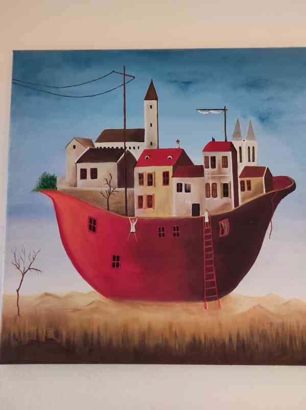 krásný obraz - domečky na lodi, krásná barevná kombinace Při rychlém jednání sleva