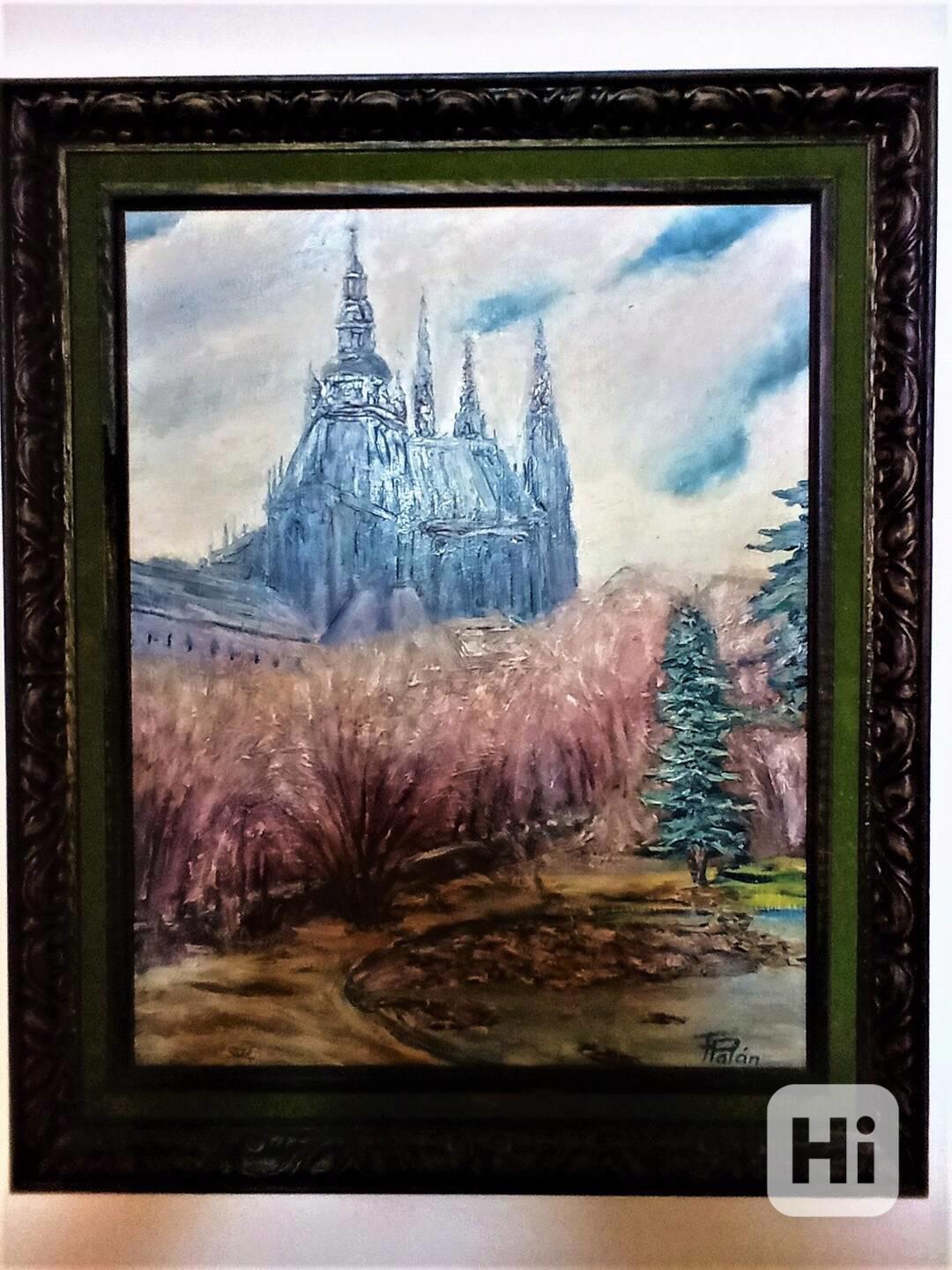 Obraz originál olej na desce Podzim u Sv. Víta,
