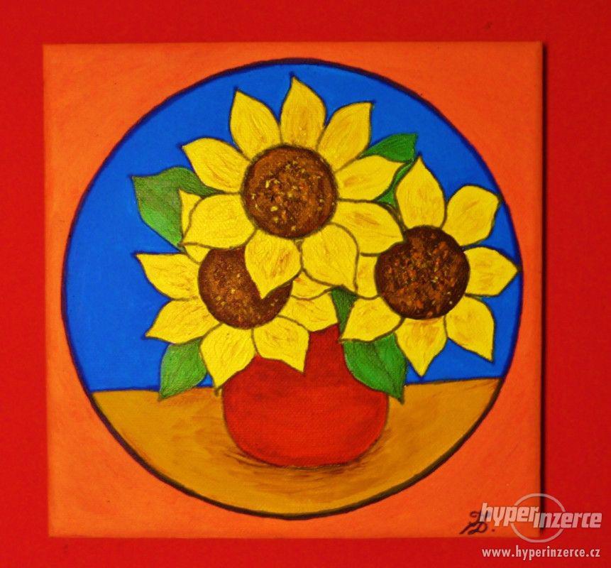 Ručně malovaný obrázek akrylovými barvami na pláto rozměru 25 x 25 cm.