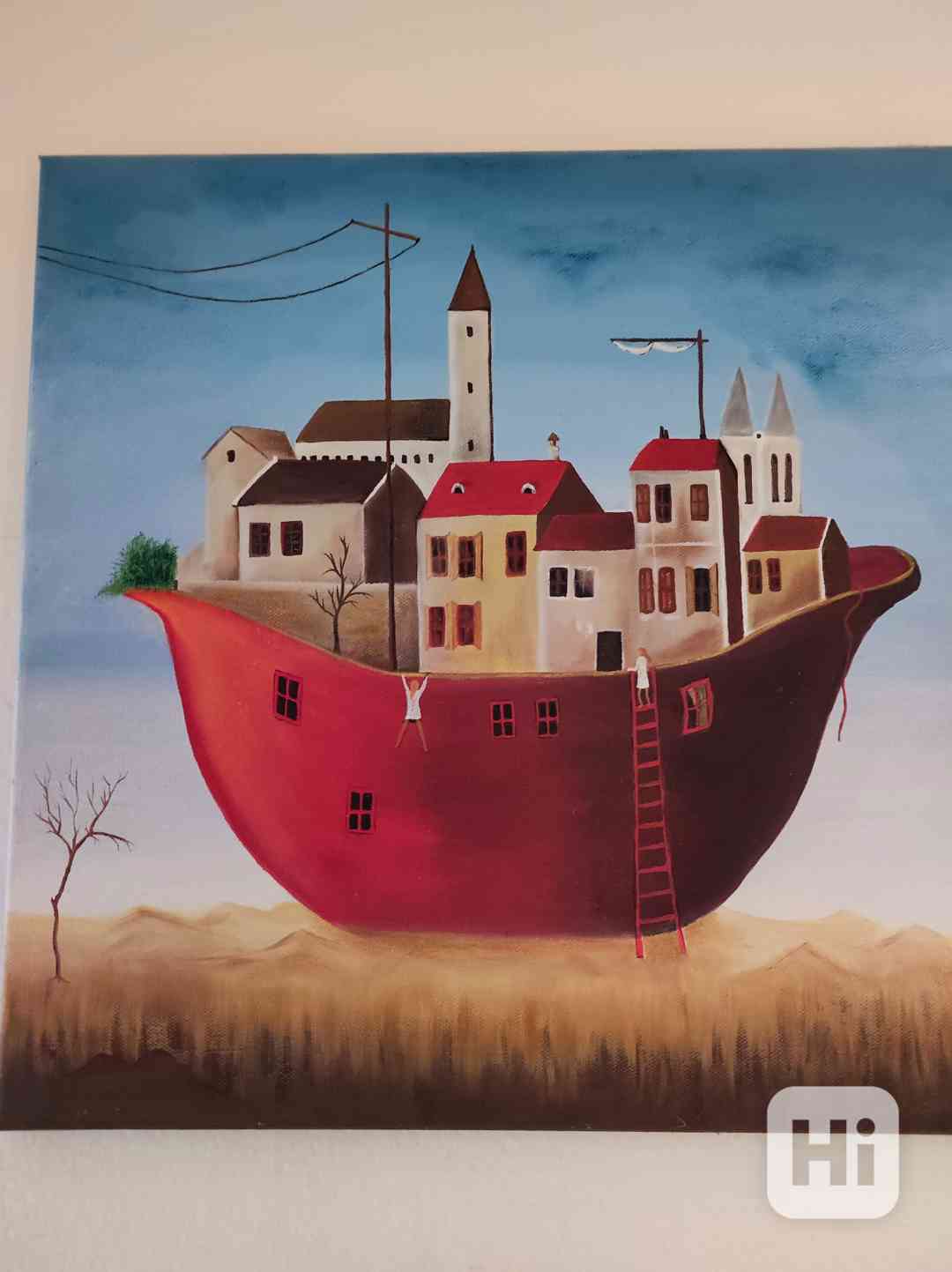 krásný obraz - domečky na lodi, krásná barevná kombinace Při rychlém jednání sleva