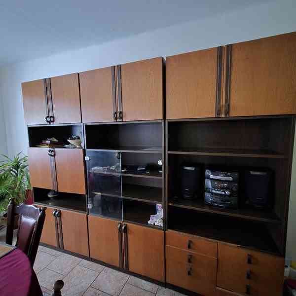Obývací stěna je ve velmi dobrém stavu. Lze různě sestavovat. Rozměry jednotlivých částí jsou 195x82 cm.